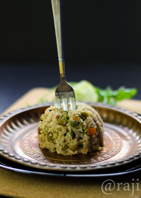 I was very fond of vermicelli, used to have vermicelli upma atleast twice in a week. But vermicelli is made up of white flour, which we all know is really bad for our health so now my normal vermicelli has been swapped with Ragi vermicelli which is made up of wheat and ragi flour. I have used Anil Ragi Vermicelli, because this is the only Indian brand which I know is available here in Dubai. Also I always use equal quantity of vegetables and vermicelli to make this upma, making this super healthy to start the day.